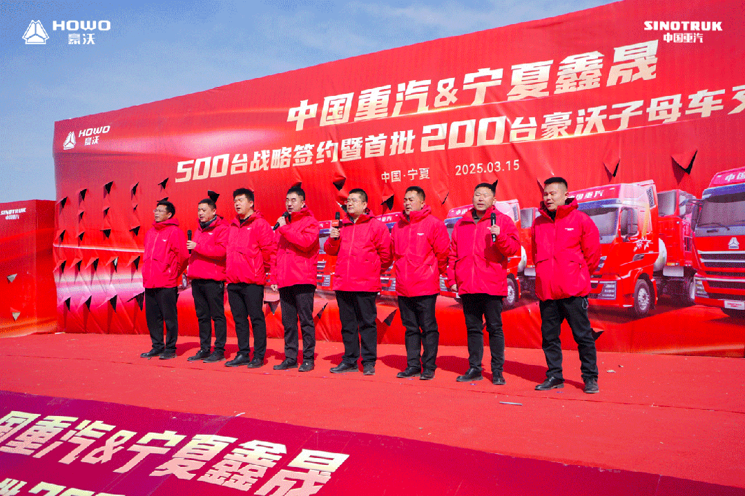 ??3月15日,“500臺中國重汽豪沃子母車戰略簽約暨首批200臺交車儀式”在寧夏中衛隆重舉行!中國重汽以高效運營為核心,以安全可靠為保障,打造西北地區煤炭運輸新標桿,為區域經濟可持續發展提供堅實支撐!