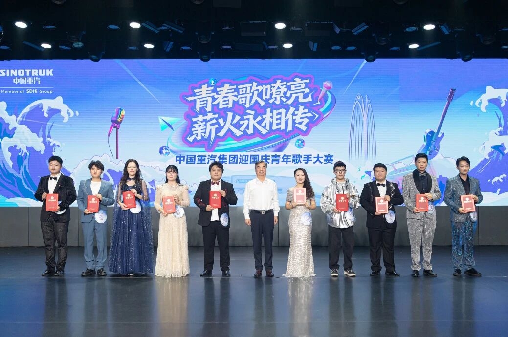 ??為紀念中國人民抗日戰爭暨世界反法西斯戰爭勝利80周年、慶祝中華人民共和國成立76周年,9月26日下午,中國重汽集團舉辦“青春歌嘹亮 薪火永相傳”迎國慶青年歌手大賽,激勵廣大青年職工發揚奮斗精神,展現青春風采,彰顯擔當作為。山東重工集團黨委副書記、董事、工會主席葉建軍出席并為獲獎選手頒獎,中國重汽集團領導班子成員參加活動。